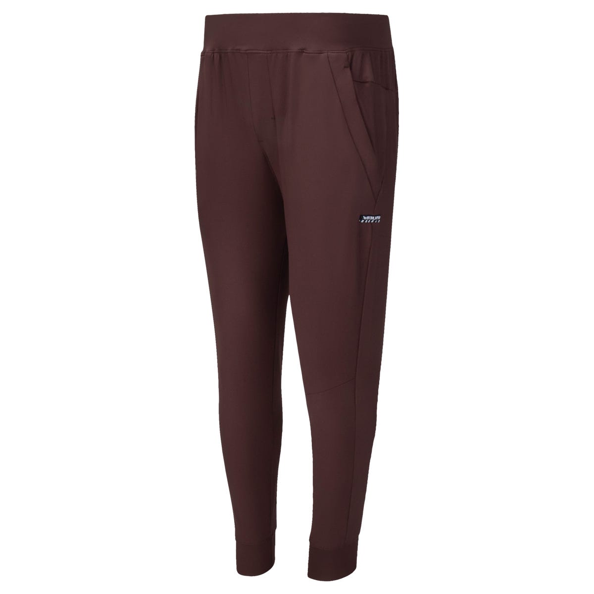 Bauer FLC Adult Woven Joggers in Tan Size Medium. Features FLC logo screenprinted on back hip Low profile waistband with adjustable drawcord Premium stretch woven fabric Slash side pockets with hidden zipper pocket on wearer's right Ribbed ankle cuffs Tapered Hockey Fit 89% Polyester 11% Spandex Bau... - Bauer FLC Adult Woven Joggers in Tan Size Medium.